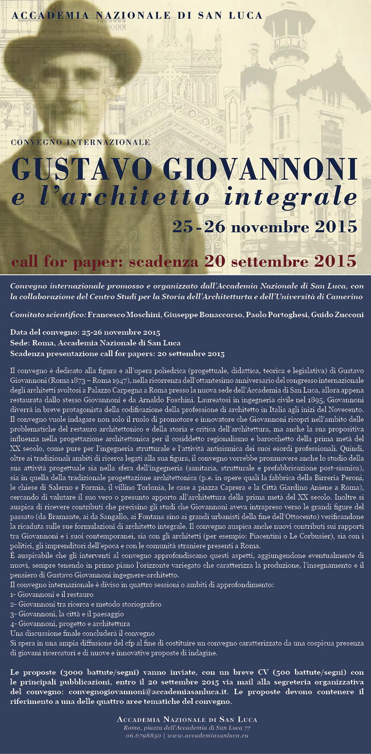Organized by the Accademia Nazionale di San Luca with the collaboration of the Centro Studi per la Storia dell’Architettura and the University of Camerino